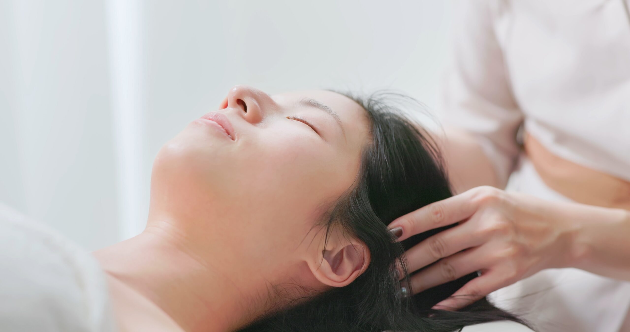 頭皮のコリをほぐし、リフレッシュ効果を高めるヘッドマッサージ。